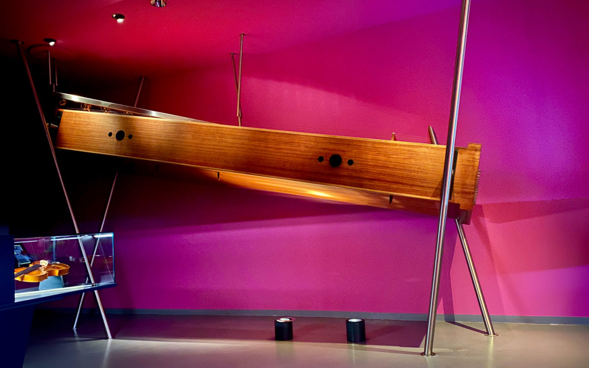 Posledním „obřím nástrojem“, a tedy i částí naší zvukově-prostorové instalace, je předimenzovaný strunný nástroj patřící do skupiny chordofonů