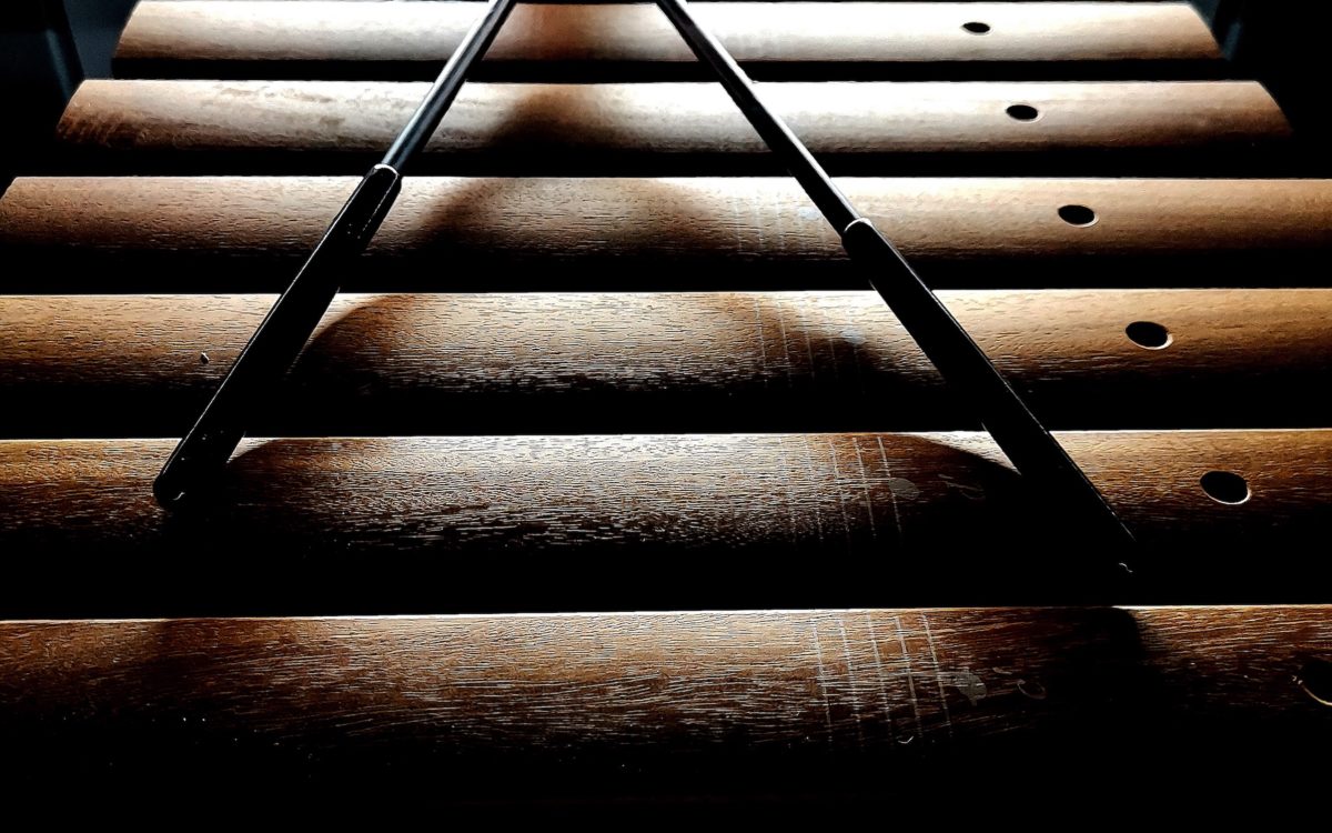 Nahoře nad vámi jsou ke stropu připevněny xylofonové plátky. Ty reprezentují samozvučné nástroje neboli idiofony.