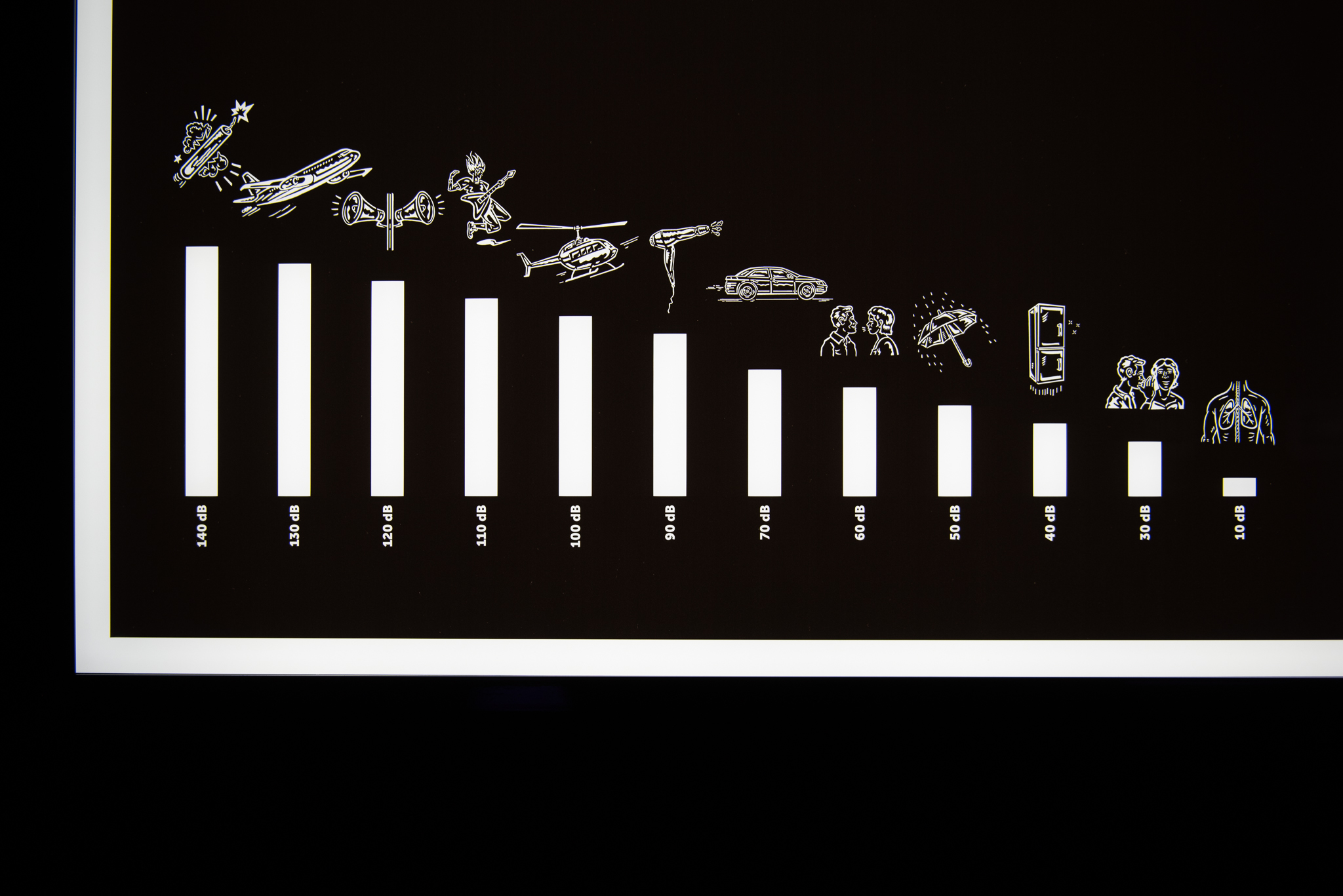 Když je sluch pravidelně vystaven hlasitosti nad 85 dB (více než 40 hodin týdně), třeba při častém poslechu hlasité hudby nebo při práci na staveništi bez ochrany sluchu, může dojít k chronickému poškození sluchu hlukem. Od úrovně hluku 120 dB může dojít k poškození sluchu už po krátkém působení.