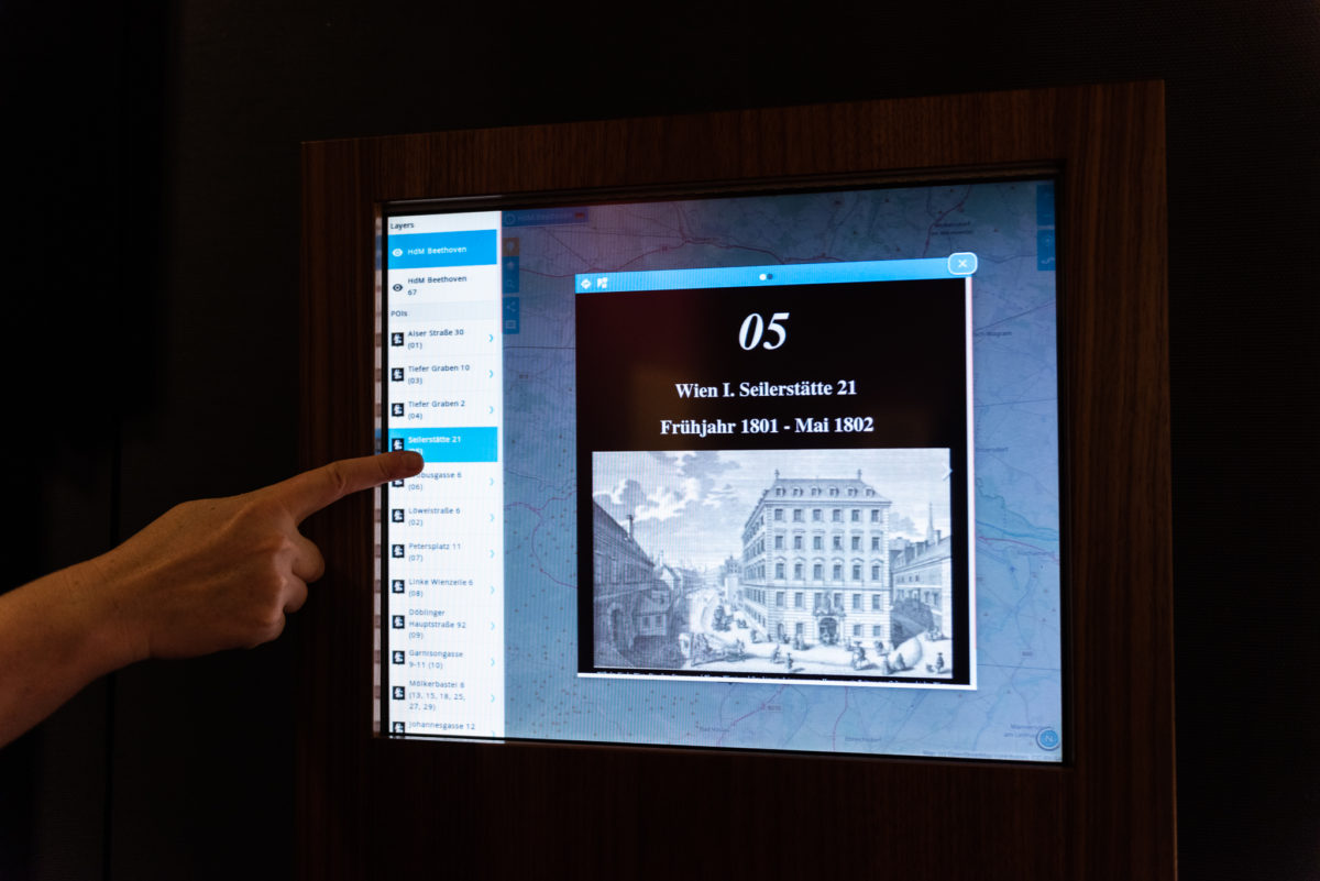 Narodil se v Bonnu, kde započal i svou hudební kariéru, osud ho ale již v mládí zavál do Vídně. Beethoven žil v tomto městě 35 let, a když vejdete do místnosti a půjdete rovně, na tabuli po pravé straně se dozvíte, že se během těchto let stěhoval celkem 67krát. Na jednom místě tedy nezůstal v průměru déle než půl roku: za prvé proto, že bylo dříve běžné odjíždět na léto z dusného města na venkov, a za druhé Beethoven rozhodně nebyl prototypem příjemného souseda. Když mu bylo například horko v důsledku náročného komponování, vylil si uprostřed bytu na hlavu kbelík studené vody – z čehož nebyli sousedi pod ním příliš nadšeni. Beethoven byl tvrdohlavý, výbušný a především hlučný. Již ve věku kolem 25 let se u něj projevily první známky nedoslýchavosti, s přibývajícím věkem byl tedy také stále hlučnější: Beethoven přicházející o sluch se bořil vší silou do kláves, a přesto nic neslyšel…