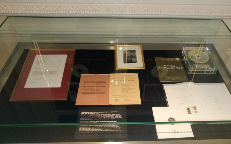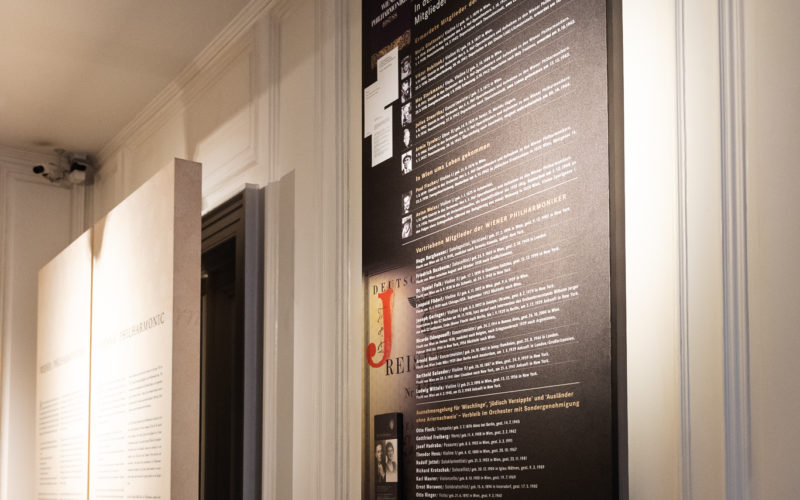 1 Wiener Philharmoniker und StaatsoperSie befinden sich nun im Gang zum Stockwerk der Wiener Philharmoniker. 2 Exkurs: KärntnertortheaterNachdem es den Philharmonikern zu Beginn untersagt war, das Haus am Ring für ihre Aufführungen zu nützen, fanden die Konzerte weiterhin im alten Kärntertortheater statt. 3 VorgeschichteWien ist eine musikalische Weltstadt und wenn man möchte, kann man hier jeden Tag ein anderes Konzert genießen. Das jedoch war nicht immer so… 4 GründungsgeschichteUm mehr über die Gründungsgeschichte der Wiener Philharmoniker zu erfahren, halten sie sich bitte links und gehen sie in den letzten Raum der Ausstellung. 5 GründertriasDie Wiener Philharmoniker verdanken wir drei musikalischen Persönlichkeiten: Otto Nicolai, Alfred Becher und August Schmidt. Lesen sie weiter, um mehr über diese Herren zu erfahren. 6 Das erste KonzertIn der Vitrine im letzten Raum des Wiener Philharmoniker Museums finden sie den Programmzettel zum ersten Philharmonischen Konzert. 7 StreitereienOtto Nicolai war ein Künstler, der einem Orchester aus Künstlern vorstand und wie es sich für kreative Kreise gehört, wurde auch oft leidenschaftlich gestritten. 8 Der DirigentDie Wiener Philharmoniker sind von einer Reihe namhafter Dirigenten geleitet worden. Sie sehen in den Vitrinen einige dieser Orchestererzieher vorgestellt. 9 Der TaktstockDie stille Orchesterleitung wurde 1810 durch Ludwig Spohr in Europa gebräuchlich. Jedoch zu Beginn nicht mit einem Taktstock, sondern mit einer schlichten Papierrolle. 10 Dirigenten im Fokus: Arturo ToscaniniDer Maestro war durch seine legendären Wutanfälle über die Grenzen der Klassikgemeinde hinaus bekannt. Besessen von seiner Arbeit und perfektionistisch bis ins kleinste Detail, verlangte er von sich selbst und vor allem von seinen Musikern äußerste Hingabe zur Kunst. 11 Der Philharmoniker BallMan kann Wien getrost als die Ballhauptstadt der Welt bezeichnen, reiht sich doch im Fasching ein rauschender Tanzabend an den nächsten. Besonders elegant ist der Ball der Wiener Philharmoniker, der jedes Jahr in den repräsentativen Sälen des Musikvereinsgebäudes stattfindet. 12 Der Philharmonische KlangDie Wiener Philharmoniker verstehen sich als direkte Erben des Instrumentenklangs der Wiener Klassik. Das bedeutet, die Veränderungen im Instrumentenbau, die seit Entstehen der nationalen Kompositionsschulen vonstatten ging, wurden bei den Wiener Philharmonikern nicht durchgeführt. 13 Die Zeit des Nationalsozialismus IWenn man heute auf die Homepage der Wiener Philharmoniker schaut, so findet man gut aufbereitetes Material - von einer unabhängigen Historikerkommission - über die nationalsozialistische Vergangenheit des Orchesters. 14 Die Zeit des Nationalsozialismus IINachdem das nationalsozialistische Terrorregime in das Orchester eingegriffen hatte und als „Volljuden“ klassifizierte Musiker bereits vertrieben worden waren, mussten nun auch „Versippte“, „Mischlinge“ oder Ausländer ohne Ariernachweis um ihr Verbleiben bangen. 15 Der Ursprung des NeujahrskonzertsAm 1. Jänner 2016 feierten die Wiener Philharmoniker das 75-jährige Bestehen des allseits beliebten Neujahrskonzertes. Weniger bekannt ist, dass eben diese berühmte Veranstaltung ihren Ursprung in einer der dunkelsten Zeiten der Österreichischen Vergangenheit hat. 16 Das Neujahrskonzert heuteHeute (Stand 2016) wird das Neujahrskonzert in ca 100 Länder übertragen und erreicht so geschätze 50 Millionen Menschen. Die Veranstaltung zum Jahreswechsel gilt daher als Aushängeschild für Österreich, dessen musikalische Botschafter die Wiener Philharmoniker sind. 17 Philharmonische ReisenDie erste Konzertreise der Wiener Philharmoniker fand zur Pariser Weltausstellung 1900 statt. Unter der künstlerischen Leitung Gustav Mahlers wurde drei Konzerte gespielt. 18 Frauen bei den Wiener PhilharmonikernMit Stand Mai 2016 sind weniger als 10% Frauen bei dem Wiener Traditionsorchester anzutreffen. Und so stehen die Philharmoniker auch heute noch in harter Kritik bezüglich ihres geringen Frauenanteils.