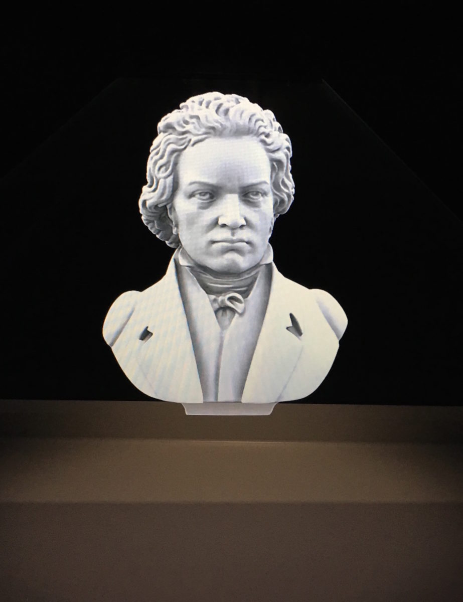 Busts of Haydn, Mozart or Beethoven seem to be levitating in the dark and give a mysterious introduction into their world of great composers.