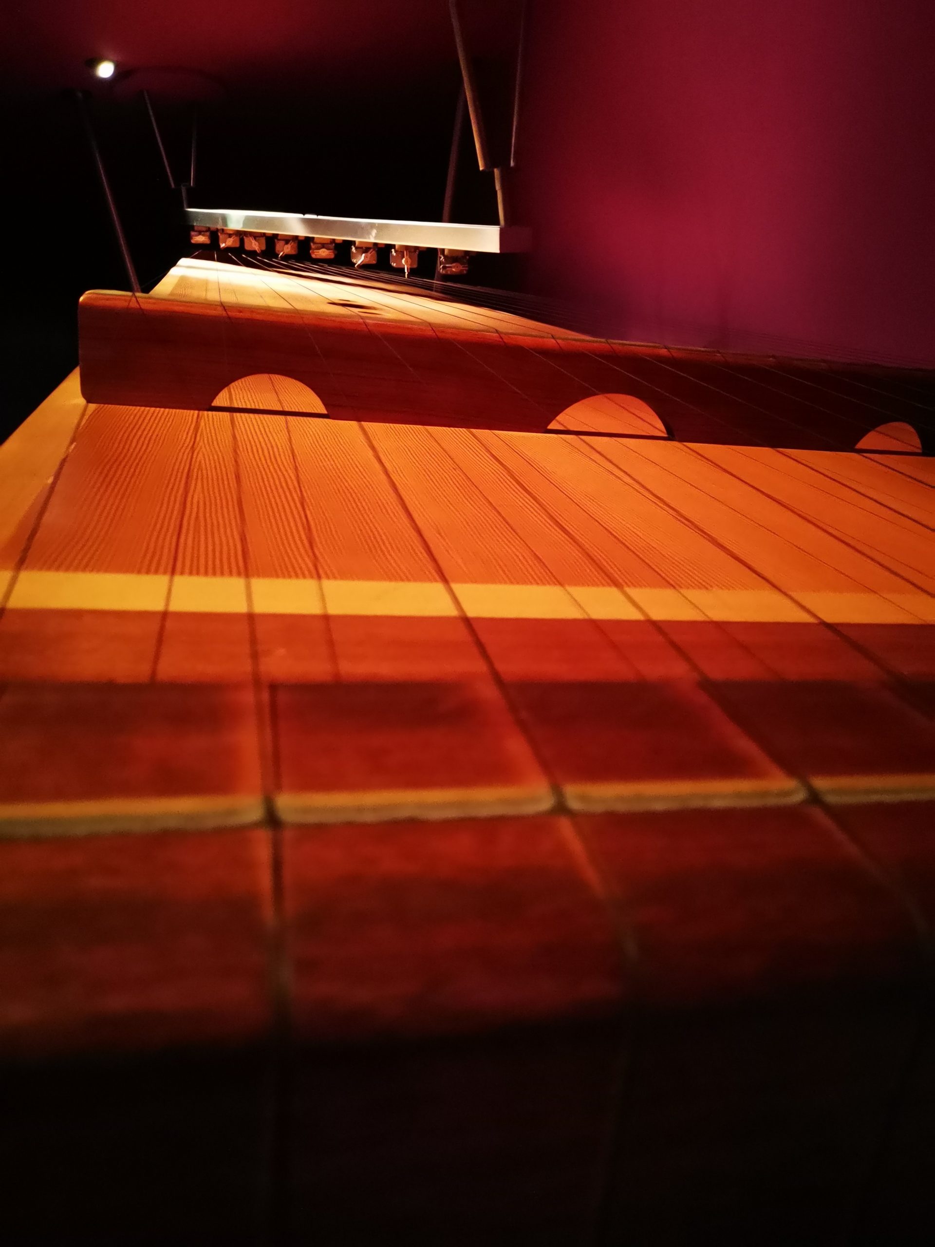 Our huge string instrument: Stand under the giant string instrument and try plucking the strings!