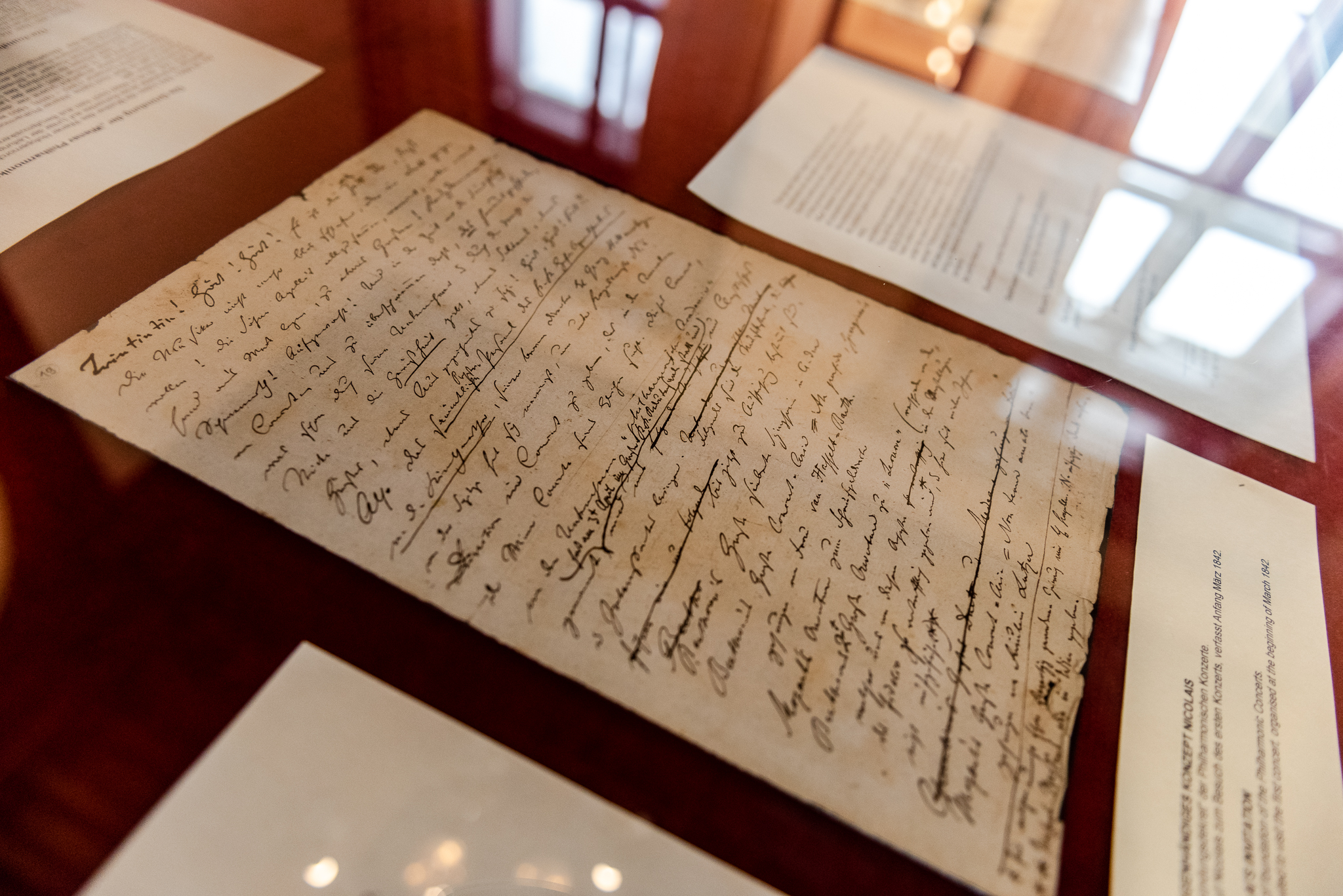As early as 1841, he became Principal Conductor at the Court Opera in Vienna. At the suggestion of leading figures from the Viennese music scene, he conducted a “Grand Concert” in the large Redouten Hall on 28 March 1842, which was organized by the entire “orchestral staff of the imperial Court Opera”. This was the birth of the Vienna Philharmonic. The founding decree and concert programme are displayed in the cabinet located in the centre of this room. The initially named “Philharmonic Concerts” became the “Philharmonic Subscription Concerts” in 1860, but it was not until 1908 that the “Vienna Philharmonic Association” was officially founded.