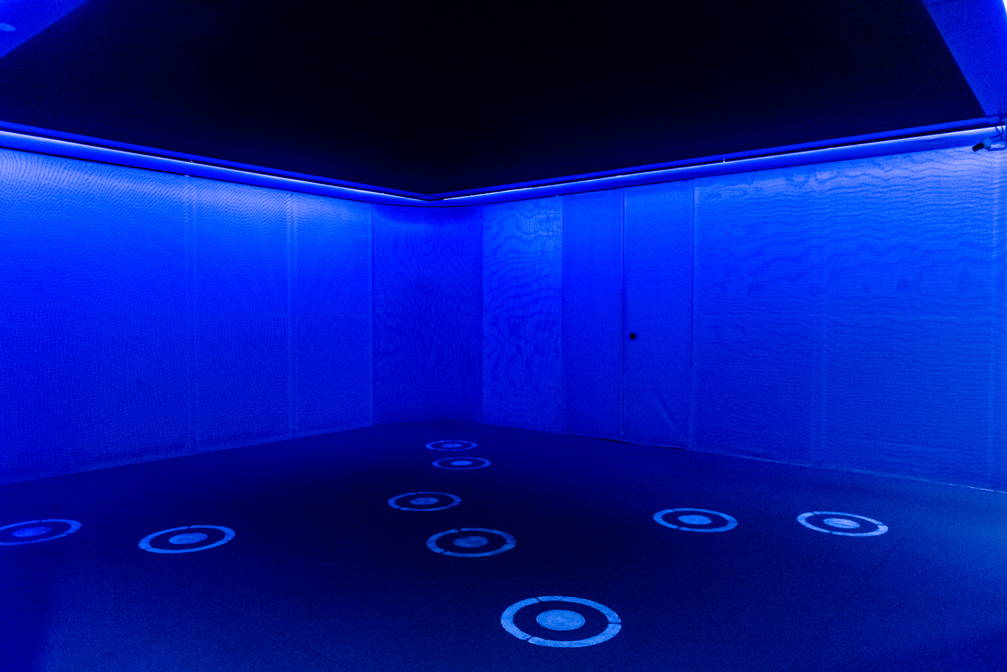 Promenez vous dans la pièce et écoutez attentivement pour découvrir de quoi se composent les différents sons. Orientez-vous à l’aide des repères au sol et arrêtez-vous de temps en temps.
