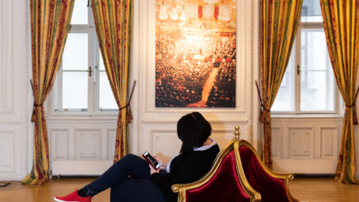 Rez-de-chaussée 1 L’histoire de la maisonVous vous trouvez dans l’ancien palais de Charles-Louis d’Autriche-Teschen (1771-1847), où celui-ci a emménagé en 1805. 2 La cage d’escalierEn montant au premier étage, dans l‘escalier magnifique avec son stuc classique aux murs et au plafond, vous passerez devant trois lambris acoustiques bleus (“Les panneaux des sons”) et suspendus. 3 Stairplay - Escalier musicalLes touches du piano deviennent les marches d’un escalier musical. Nous vous invitons à jouer et faire vos gammes sur ce piano, et, ce faisant, à découvrir à l’infini de nouvelles combinaisons sonores. 1. Étage - Orchestre Philharmonique de Vienne 4 Promenade de l’Orchestre philharmonique de VienneVous êtes maintenant en route pour l'exposition philharmonique de Vienne. 5 Exposition de l'Orchestre philharmonique de VienneVous êtes à présent au cœur de l’exposition consacrée à l’Orchestre philharmonique de Vienne. 6 Le jeu de dés de la valseLancez les dés et créez votre valse viennoise personnelle ! Placez-vous devant une des quatre tables et positionnez votre main au-dessus du capteur. 7 La salle Otto NicolaiApprenez-en davantage sur la création du célèbre orchestre et jetez un œil par la même occasion sur notre cheminée Renaissance, sur le plafond à poutres apparentes et aux lambrissages en bois sculpté. 8 Chefs d'orchestre et compositeurs célèbresLe lien artistique qui rattache les chefs d’orchestre et compositeurs célèbres à l’Orchestre philharmonique de Vienne est mis en lumière par ces quatre vitrines d’exposition. 9 Le bal de l’Orchestre philharmonique de VienneLe premier bal de l’Orchestre philharmonique de Vienne a eu lieu le 4 mars 1924, après seulement huit semaines de préparation. Cet événement dansé a comblé toutes les attentes en matière de bénéfices financiers et d’impact mondain. 10 La salle de cinémaToutes les heures, vous pouvez assister au concert du Nouvel-An le plus récent, avec une qualité d’image et de son optimale. Le chef d'orchestre du 83e Concert du Nouvel An 2022 était pour la troisième fois DANIEL BARENBOIM. La séance du Concert d'une Nuit d'Été de 2021, dirigé par DANIEL HARDING, commence 15 minutes avant chaque heure pleine. 2. Étage - Sonotopia 11 La sonotopiaAu deuxième étage, vous entrez dans le monde mystérieux des sons. 12 OrigineLes sons et les bruits sont des compagnons constants dans notre vie. Promenez vous dans la pièce et écoutez attentivement pour découvrir de quoi se composent les différents sons. 13 Qu'est-ce que le son?Le son est défini comme des vibrations mécaniques dans un milieu élastique (par exemple dans l’air). Ces oscillations se propagent sous forme d'ondes sonores. Dans l'air, les ondes sonores sont des fluctuations de pression et de densité. 14 Tube à ondesDéjà en 1866, le physicien allemand August Kundt (1839-1894) a réussi à représenter physiquement les ondes sonores. 15 Phenomènes - Laboratoire de PerceptionEn vous servant des six bornes interactives avec écran tactile, vous avez maintenant la possibilité de faire des expériences vous-même. Mettez le casque audio et touchez l'écran. 16 L’oreilleL´oreille externe - L´oreille moyenne - L´oreille interne - Transmission des stimuli au cerveau 17 Volume et pression acoustiqueLa mesure physique de l'intensité du son est la pression acoustique. L'unité de mesure est le décibel (dB). 18 InstrumentariumIci, dans l'Instrumentarium, les principes de la génération sonore sont illustrés à l'aide de quatre instruments géants. 19 "Concert au zoo"Être directrice ou directeur d’un zoo: pour cela, on n’a pas besoin de l’autorisation du jardin zoologique viennois de Schönbrunn. Un conte interactif pour les découvreurs curieux! 20 Univers SonotopiaUn univers sonore unique s'étend au-dessus de vos têtes et remplit la salle. Les êtres et les formes qui se bougent ici sont appelés CLONG. 21 Laboratoire Sonotopia 3. Étage - « Grands maîtres » 22 L’escalier qui mène vers les «grands maîtres»Pendant que vous vous dirigez vers le troisième étage, celui des «grands maîtres», laissez votre regard flâner vers le haut. Vous avez reconnu ce qui y est accroché? 23 Les maîtres flottantsIci les compositeurs Haydn, Mozart ou Beethoven semblent flotter librement à travers la salle – une entrée mystérieuse dans le monde des grands maîtres. 24 Joseph HaydnVous vous trouvez à présent dans la première pièce dédiée au classicisme viennois. Le compositeur présenté ici, Joseph Haydn (1732-1809), passe pour être le précurseur et l’inventeur de ce style musical. 25 Wolfgang Amadeus MozartVous vous trouvez à présent dans la deuxième pièce dédiée au classicisme viennois, et vous y suivez l´évolution de cet enfant-prodige qu´était le petit Wolfgang jusqu’au génie Mozart (1756-1791). 26 Ludwig van BeethovenVous vous trouvez à présent dans la troisième salle des grands compositeurs, avec Ludwig van Beethoven (1770-1827) qui fut le dernier représentant du classicisme viennois. 27 Franz SchubertCette pièce est consacrée au compositeur Franz Schubert (1797-1828) – nous quittons ainsi le classicisme viennois pour nous tourner vers le romantisme. 28 Johann Strauss filsNous nous tournons à présent vers Johann Strauss fils (1825-1899), le roi de la musique de divertissement viennoise du 19ème siècle. 29 Gustav MahlerVous entrez à présent dans l´univers de Gustav Mahler (1860-1911), un artiste très travailleur: célèbre comme chef d’orchestre et directeur de l´Opéra de la cour impériale mais aussi comme compositeur. 30 La deuxième École de VienneVous vous trouvez à présent dans la salle de la « Deuxième École de Vienne », et encore une foi, Vienne a réorganisé le monde de la musique, pour ne pas dire mis sens dessus-dessous! 31 « La salle l’exode »Juste à côté, nous pouvons voir une installation de Rudolf Leitne